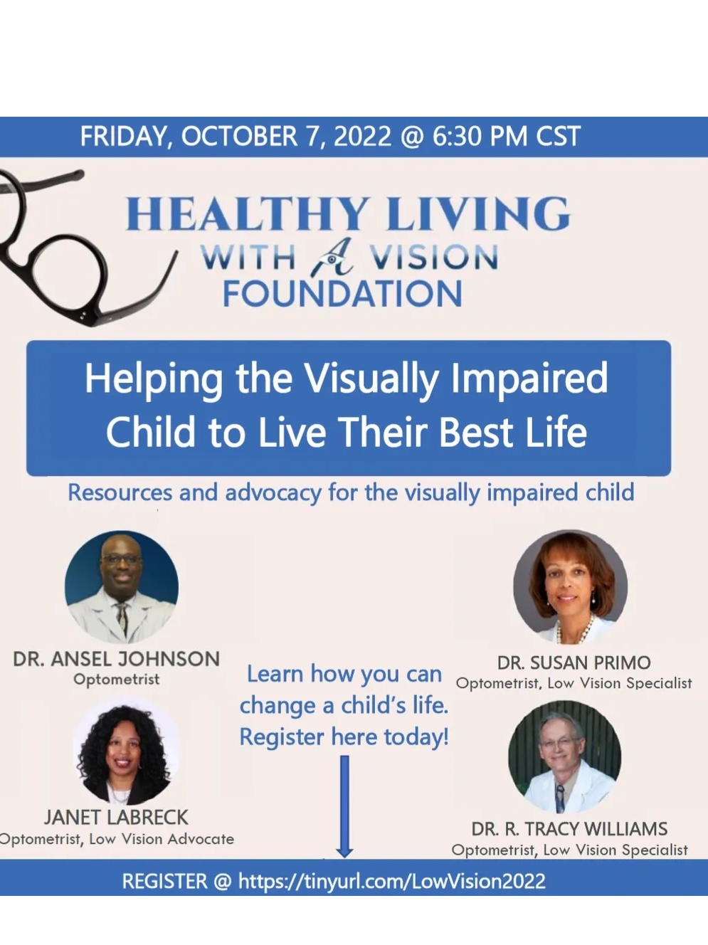 Meet with Healthy Living with a Vision medical experts on how you can help children who are visually impaired. Join us for our free, virtual town hall on Friday, October 7, 2022, to get your questions answered.